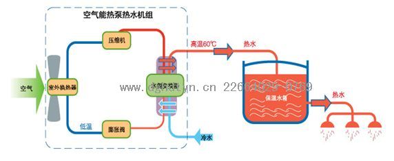 空氣能熱水器又稱之為空氣源熱泵,熱泵熱水器,空氣能熱泵等,是當(dāng)今世界上最先進(jìn)、能效比最高的熱水設(shè)備——空氣能熱泵熱水器成功地運(yùn)用逆卡諾循環(huán)原理,采用電能驅(qū)動(dòng),通過傳熱工質(zhì)把自然界的空氣低溫?zé)嵩粗袩o法利用的熱能有效吸收,并將吸收回來的熱能提升至可用的高品位熱能并釋放到水中的設(shè)備。在不同工況下熱泵熱水器機(jī)組每消耗1KW電能就能從低溫?zé)嵩粗形?~6KW的免費(fèi)熱量,節(jié)能效果非常顯著。