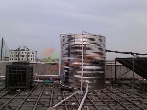 工廠熱泵工程方案:整棟有100個(gè)員工,采用桶提方式?jīng)_浪,在宿舍樓頂安裝1臺(tái)RSJ-200/S-540V-C循環(huán)式空氣能熱泵機(jī)組,配備1個(gè)3噸的保溫水箱,熱水管道接到每層的樓梯口,每處安裝2個(gè)熱水龍頭。24小時(shí)供應(yīng)熱水。連接樓頂原有的2組真空管太陽(yáng)能,整個(gè)系統(tǒng)全自動(dòng)控制。
