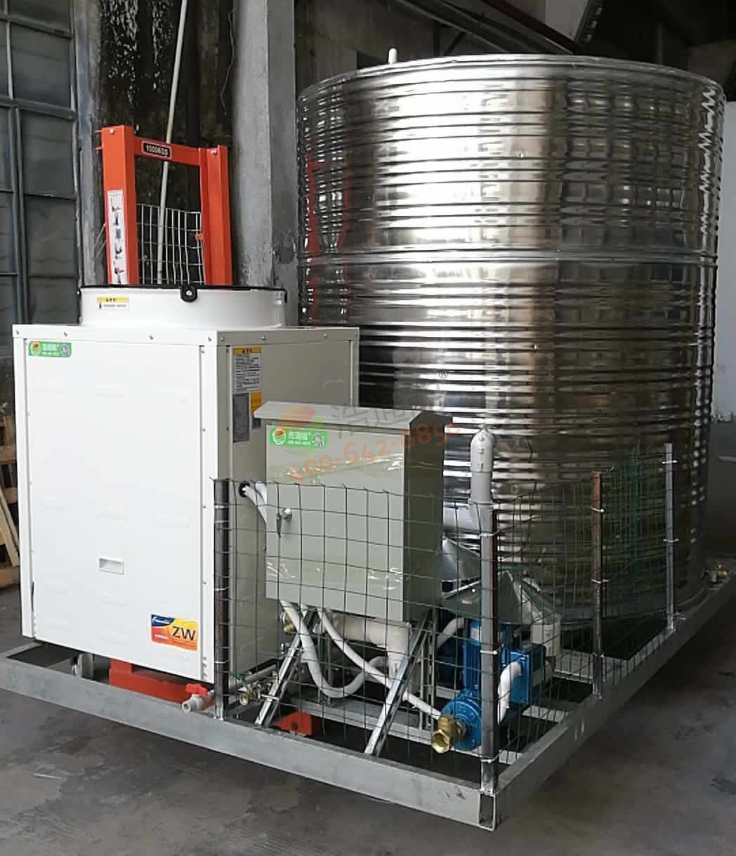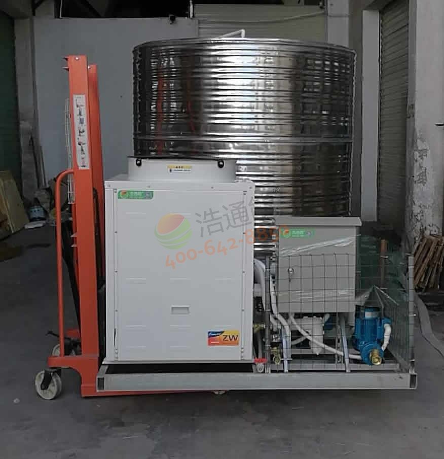 使用浩通能空氣能熱泵3匹主機(jī)一臺,配3噸不銹鋼保溫水箱1個(gè)及相關(guān)配套設(shè)施,為浩通能空氣能整體式熱水器設(shè)備一套