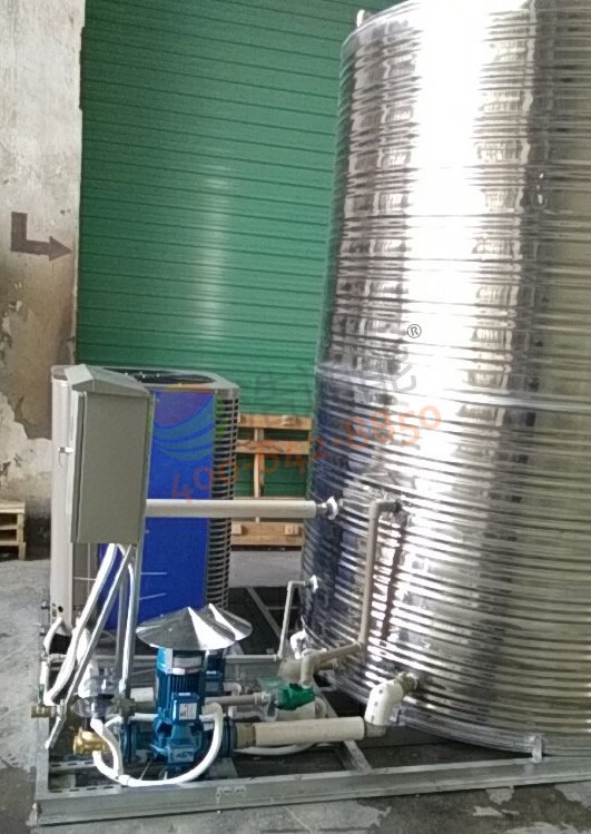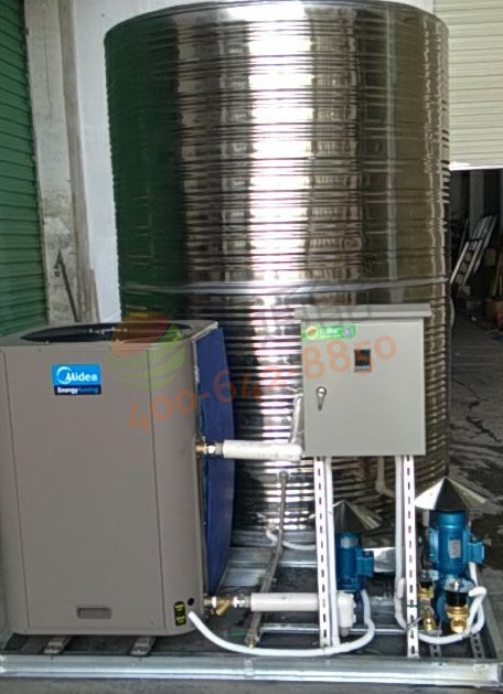 RSJ-200/MS-540V1(5P)美的空氣能熱泵主機1臺、5噸圓形立式不銹鋼保溫水箱1個及相關配套設施