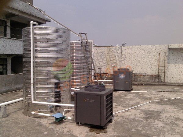 東莞天盾鞋廠熱泵工程方案:整棟有200個員工,采用花灑方式沖涼,在宿舍樓頂安裝2臺美的5P循環(huán)式空氣能熱泵機組,配備1個3噸+1個5噸的保溫水箱,熱水管道接到每層的沖涼房內,每處都安裝冷熱水調節(jié)閥。定時供應熱水。整個系統(tǒng)全自動控制。