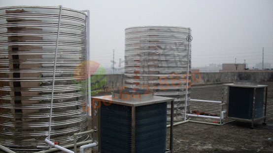 改造方案:在宿舍樓頂安裝2臺(tái)RSJ-200/S-540V-C直熱循環(huán)式熱泵機(jī)組,配備2個(gè)5噸的保溫水箱,熱水管道接到每層的樓梯口,每處安裝4個(gè)熱水龍頭。定時(shí)供應(yīng)熱水。整個(gè)系統(tǒng)全自動(dòng)控制。