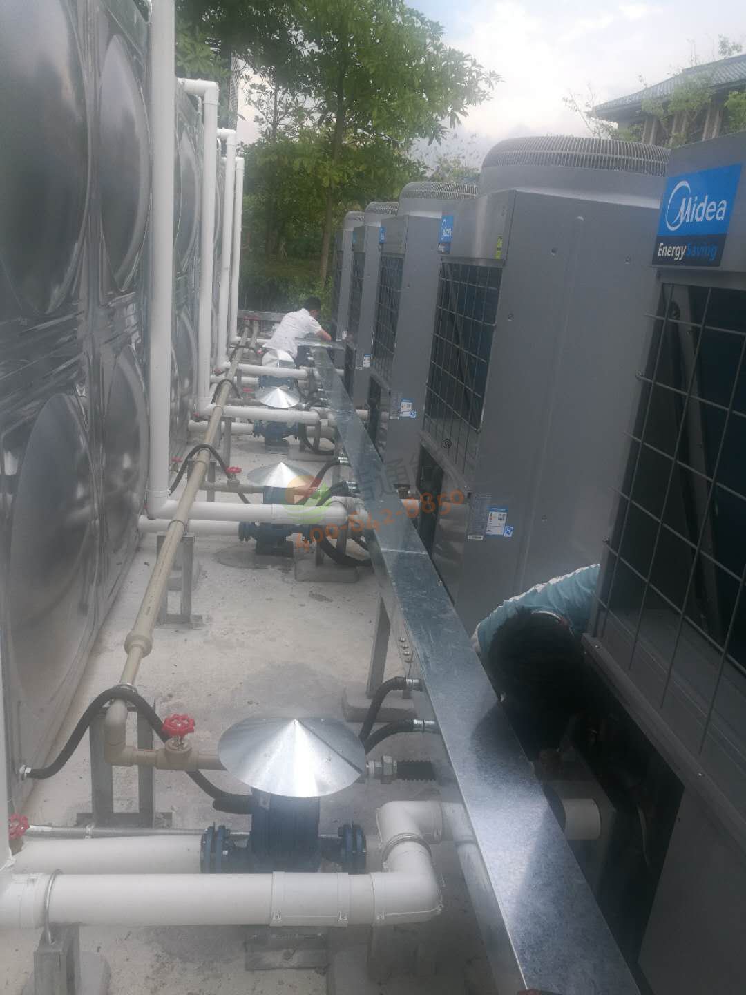 - ///項目名稱:廣州從化從都國際峰會酒店——10臺10匹美的空氣能熱泵供100噸熱水設備