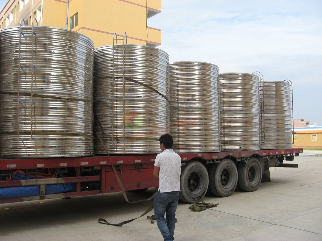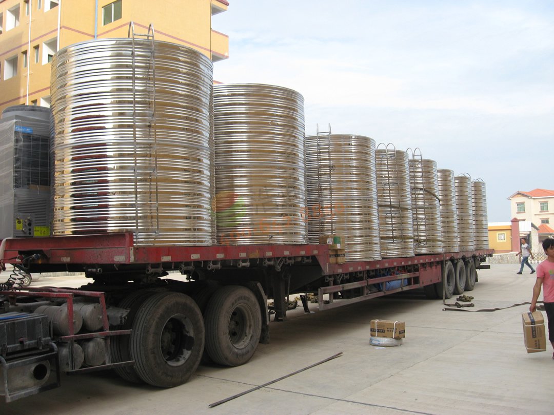 廣東華立中英文學(xué)校學(xué)生宿舍14號公寓——80噸空氣源熱泵熱水項目-水箱裝車