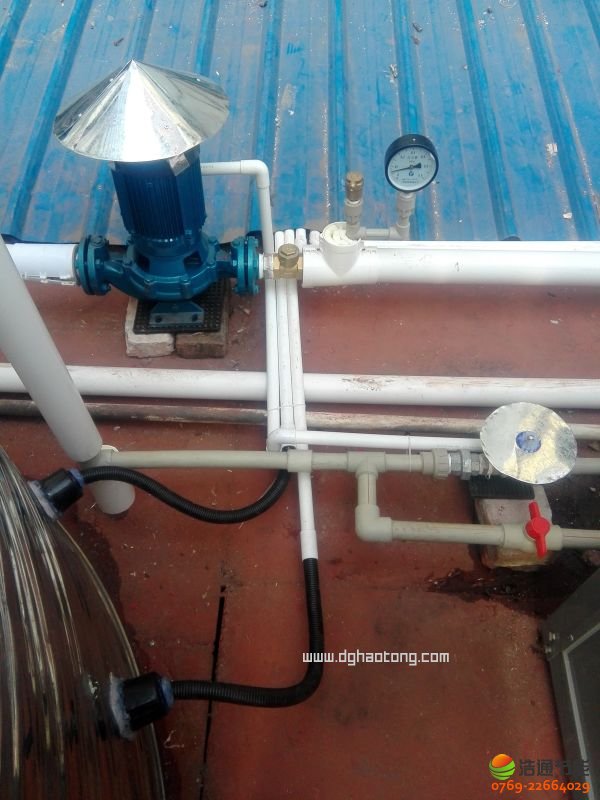 湖北黃石如家酒店10匹10噸美的空氣能熱泵熱水工程項(xiàng)目——水泵與水箱連接