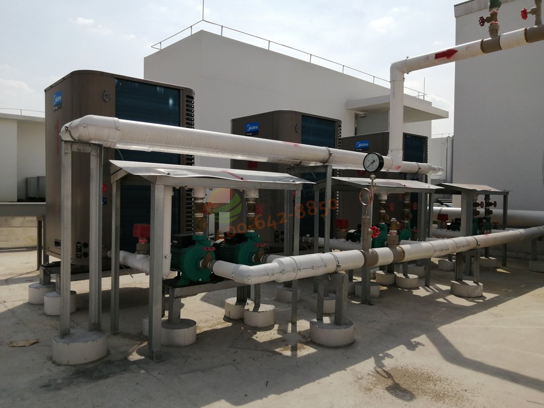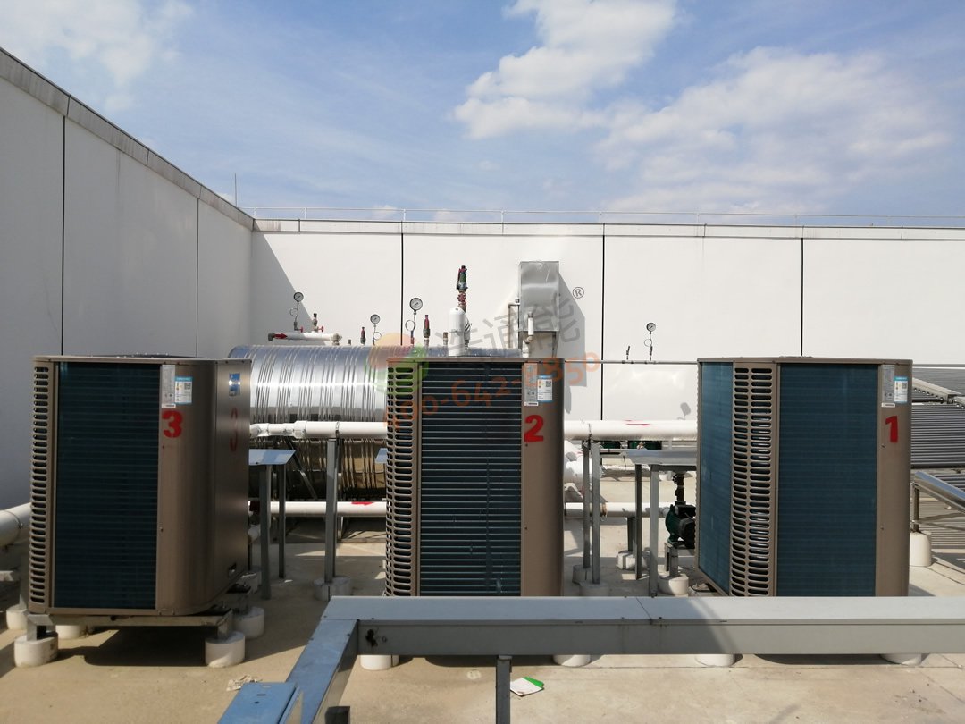 廣州白云機(jī)場(chǎng)綜合保稅區(qū)南區(qū) - 15噸太陽(yáng)能+空氣能熱水工程 熱泵主機(jī)與太陽(yáng)能集熱水器連接