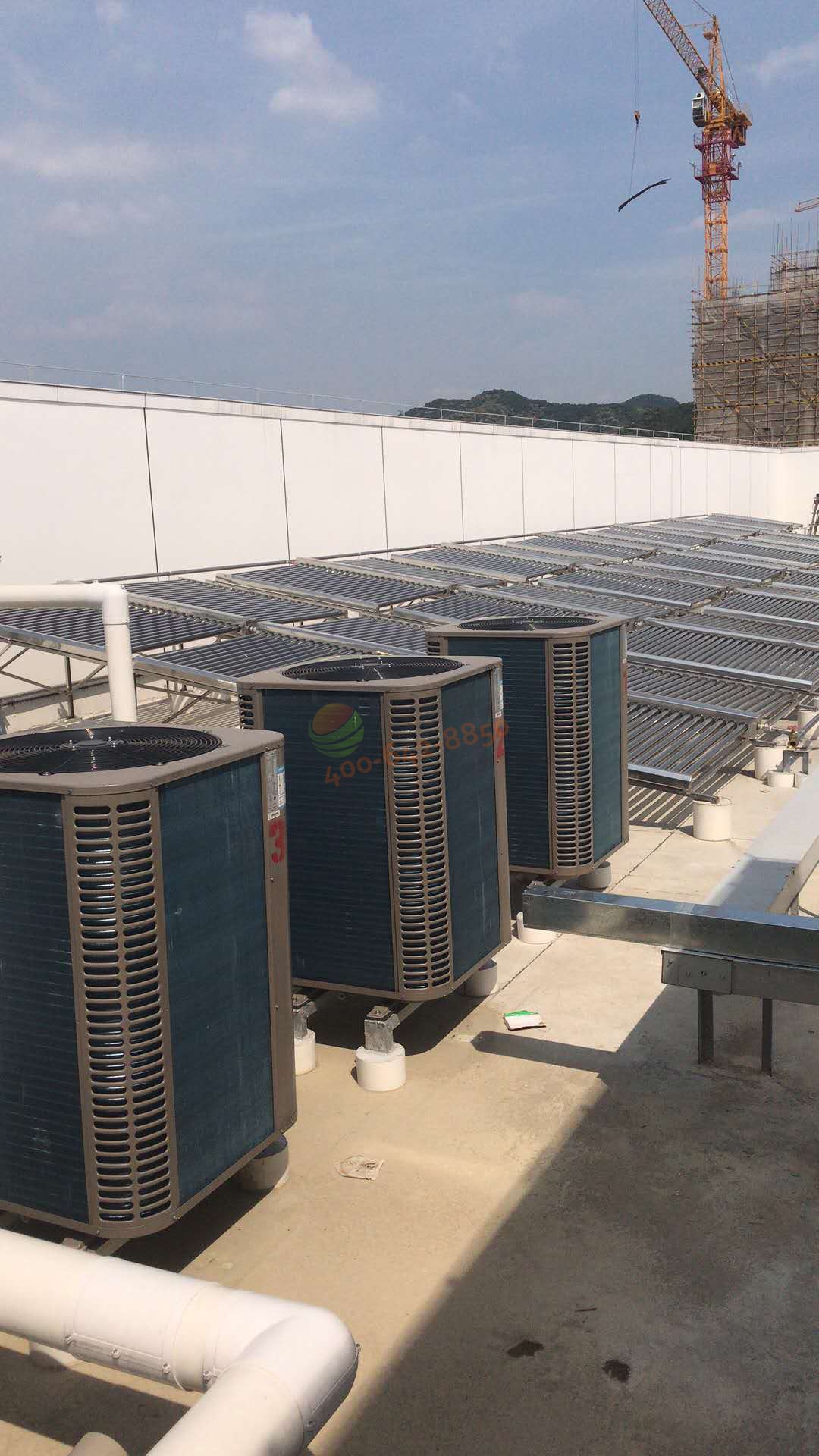 廣州白云機(jī)場(chǎng)綜合保稅區(qū)南區(qū) - 15噸太陽(yáng)能+空氣能熱水工程 熱泵主機(jī)安裝