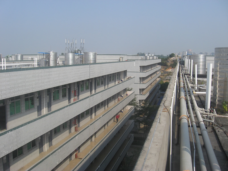 東莞綠揚(yáng)鞋業(yè)有限公司10000人員工宿舍400噸水太陽(yáng)能+空氣能熱泵熱水工程項(xiàng)目側(cè)面效果