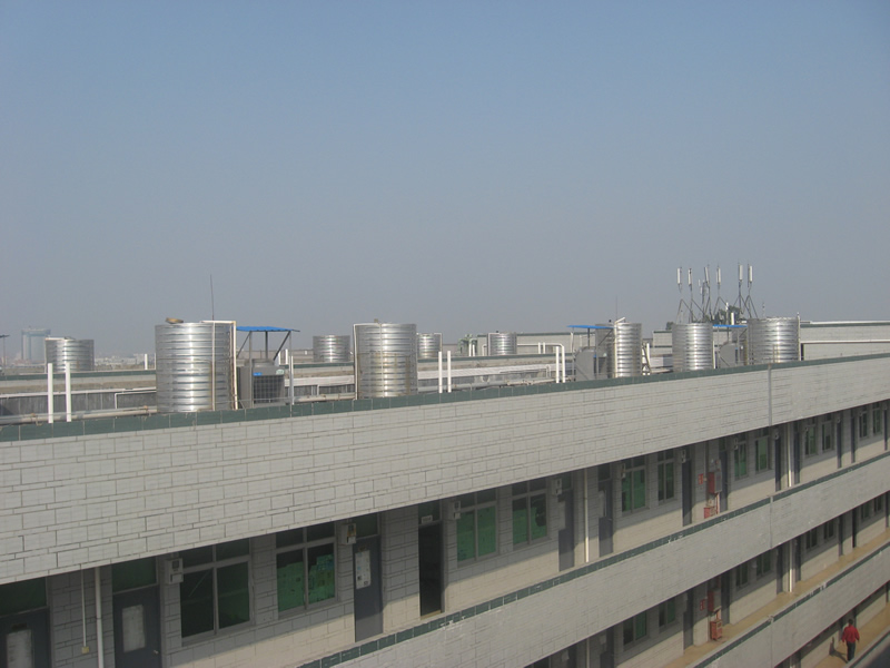 東莞綠揚(yáng)鞋業(yè)有限公司10000人員工宿舍400噸水太陽(yáng)能+空氣能熱泵熱水工程項(xiàng)目水箱安裝效果