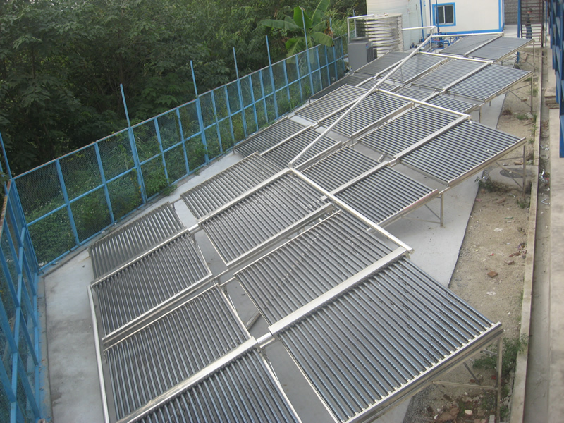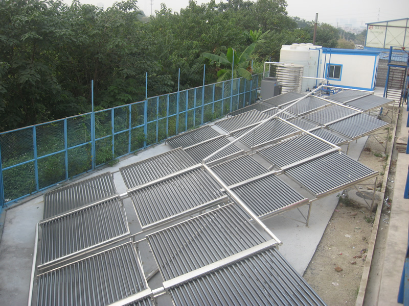 東莞綠揚(yáng)鞋業(yè)有限公司10000人員工宿舍400噸水太陽(yáng)能+空氣能熱泵熱水工程項(xiàng)目太陽(yáng)能真空管多聯(lián)機(jī)組合安裝效果