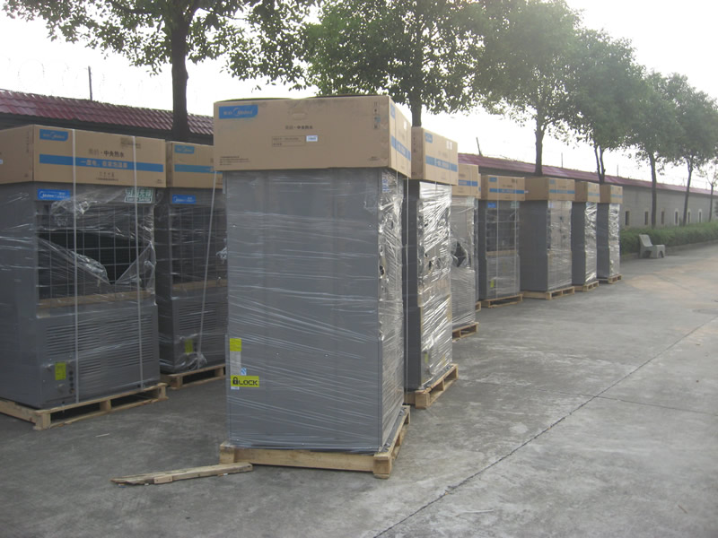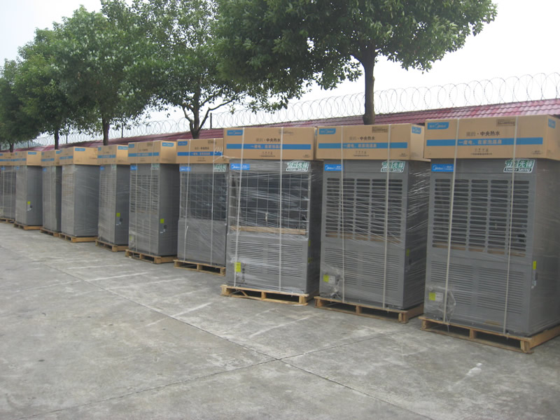 東莞綠揚(yáng)鞋業(yè)有限公司10000人員工宿舍400噸水太陽(yáng)能+空氣能熱泵熱水工程項(xiàng)目所用到美的空氣能熱泵主機(jī)