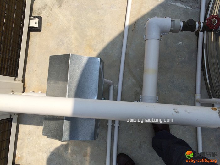 廣州市星雅機(jī)械有限公司10噸太陽能+空氣能熱泵熱水工程項(xiàng)目——熱泵主機(jī)與水箱連接
