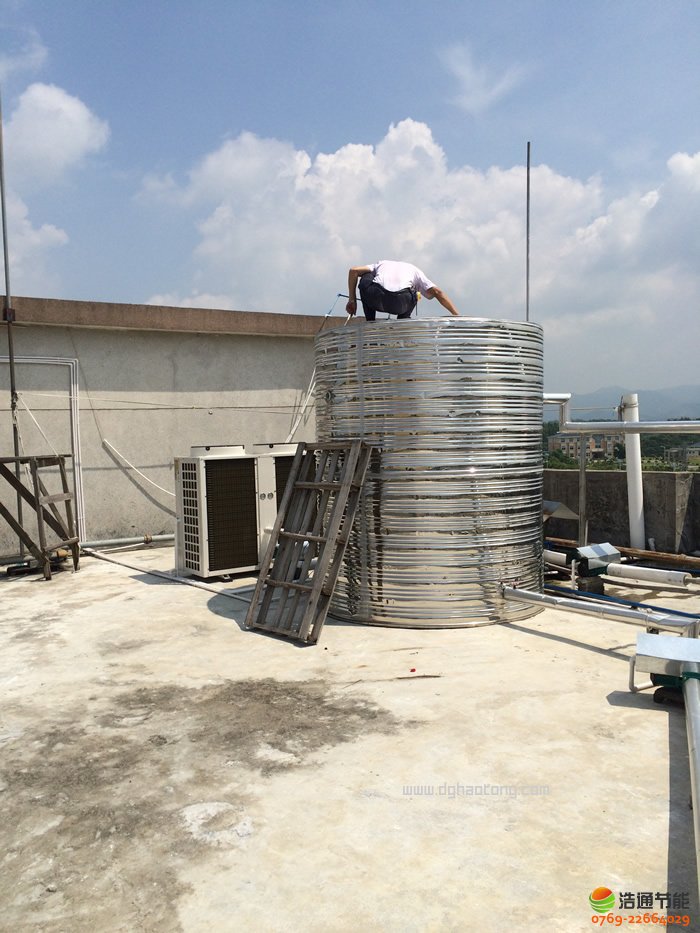 廣州市星雅機(jī)械有限公司10噸太陽能+空氣能熱泵熱水工程項(xiàng)目——10噸圓形保溫水箱安裝